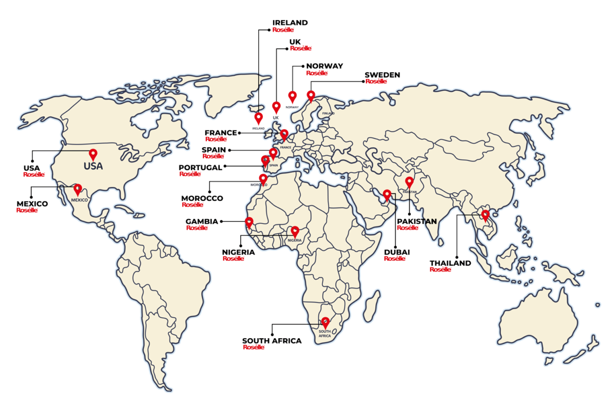 Roselle Delight transcends borders, bringing exquisite products to taste enthusiasts worldwide. From the bustling streets of London to the vibrant markets of Thailand, our flavors have captured the hearts of many. Our global reach ensures that we deliver high-quality products that celebrate the rich diversity of culinary traditions.