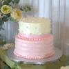 This is our iconic Ivory Pearl Wedding cake made from a soft fluffy sponge layered with pure frosting cream, layered homemade jam, and covered with frosting cream. With a simple and elegant pearl detail across the top and around the cake.