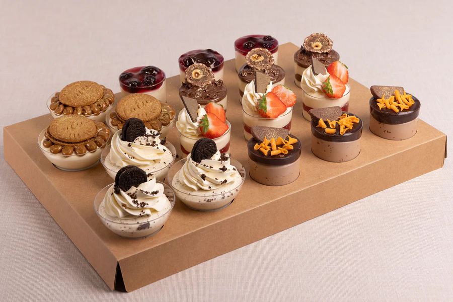 Treat yourself to the ultimate indulgence with our Mini Cheesecake Selection Box. This assortment of 18 mini cheesecakes features a variety of mouth-watering flavours, carefully crafted to cater to every palate. From classic favourites to unique creations, this selection box promises a delightful surprise with every bite.